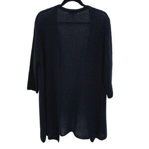 Eileen Fisher Womens Black Cotton Linen Blend Long Line Sweater Cardigan L