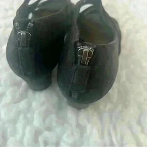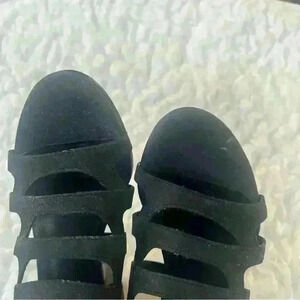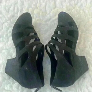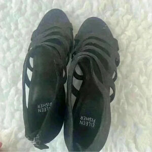 Eileen Fisher Women's Black Leather Cage Strap Back Zip Heeled Sandals Size 9