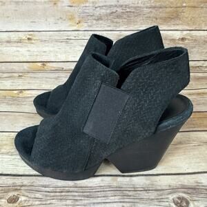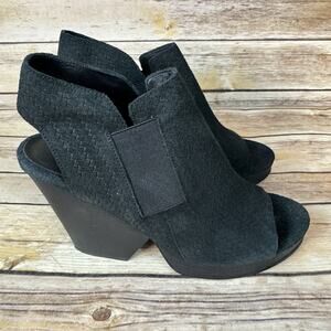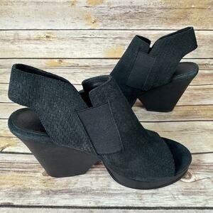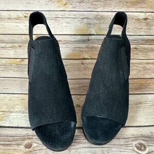 Eileen Fisher Womens Black Leather Peep Toe Woven Texture Cone Heel Shoes 6