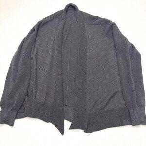 Eileen Fisher Womens Black Metallic Open Front Wool Blend Cardigan Size Medium