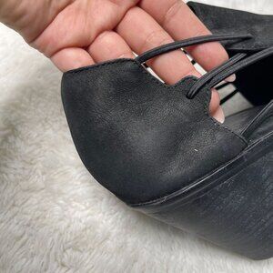 Pre-owned authentic Eileen Fisher Women's Black Nikki Peep Toe Heeled Boots Shoes Size 11. Has some scuffing. Has a micro hole. Has some marks. Please look at pictures for better reference. Let me know if you have any other questions. Happy Shopping! NSEP25. TZ