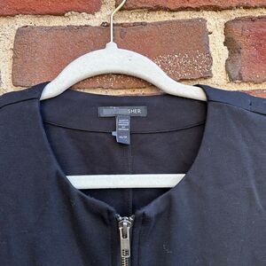 Eileen Fisher Womens Black Stretch Rounded Neck Zip ponte Jacket blazer XS NEW