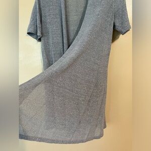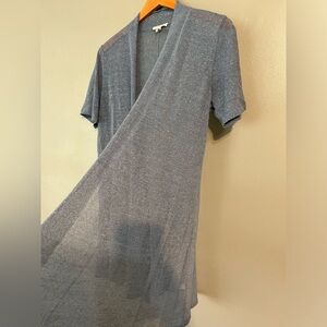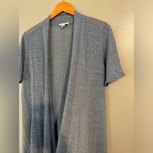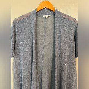 Eileen Fisher Womens Blue Organic Linen Blend Knit Shiny Open Cardigan Sz M Knee Length Short Sleeves In Excellent Preowned Condition See Pictures For Details and Measurements