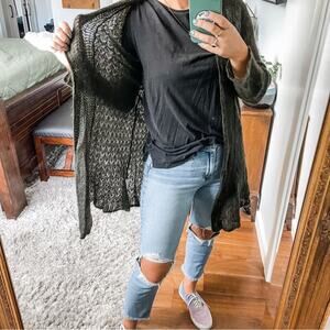 Eileen Fisher | Women’s Brown Mohair Blend Open Knit Long Cardigan Sweater Wool