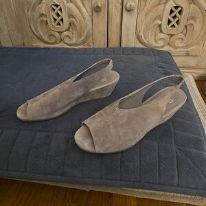 Only tried on in the home never worn. gorgeous shoes. mom is like a grayish purple. stunning.