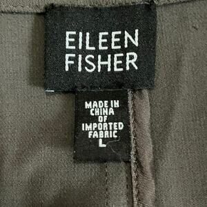 This Eileen Fisher blazer is versatile, suitable for casual to semi-formal occasions. Its neutral grayish-brown color and minimalist design make it a wardrobe staple.