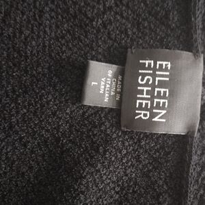 Eileen Fisher Womens Cardigan Large Black Wool Open Front Minimalist Modern