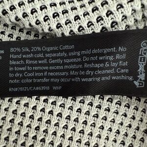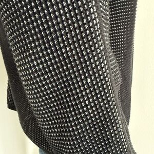 Black and white knit open cardigan made of silk and organic cotton. There are a few loose threads but overall good condition. Please see pictures for material content.