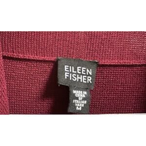 This Eileen Fisher cardigan top in burgundy is a stylish and versatile addition to any wardrobe. Made from wool Italian yarn, this tight-knit sweater features a classic long sleeve and open front design. Perfect for travel, casual outings, workwear, or business settings, this cardigan is both comfortable and fashionable. Hand wash only to maintain its quality, this item is a must-have for the winter, fall, and spring seasons. The designer brand and modern style make it a timeless piece that can be worn for years to come.
