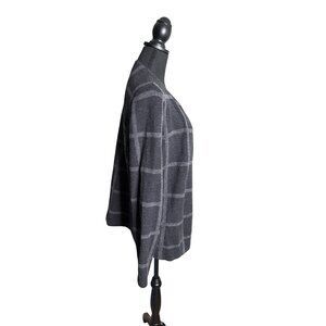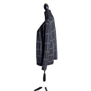 Eileen Fisher Women's Charcoal Gray Window-Pane Merino Wool Open Cardigan S