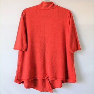 Eileen Fisher Womens Coral Red Open Front Cardigan Sweater Plus Size 1X Linen