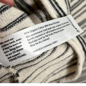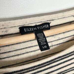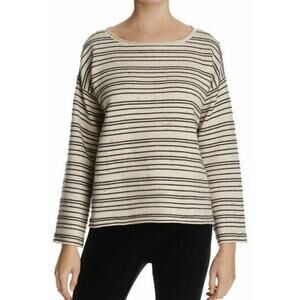 Eileen Fisher Womens Cotton Wool Pullover Sweater Large Beige Black Stripe Boxy