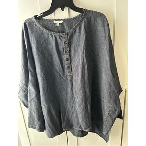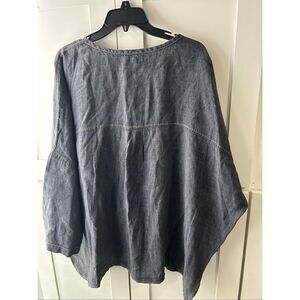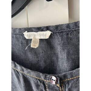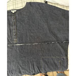 Eileen Fisher Womens Denim Look 100% Linen Popover Top Buttons Pockets XL