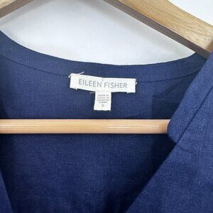 Eileen Fisher Womens Irish Linen Tunic Button Down V-Neck Navy Blue Sz S