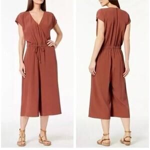 Eileen Fisher Womens Jumpsuit Petite Small Brown Tencel Wide Crop Leg Minimalist