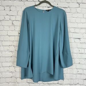 Eileen Fisher Lantern Sleeve Georgette Silk Blouse Tunic Top Women's Size Small S in Blue River.