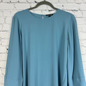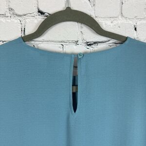 Eileen Fisher Womens Lantern Sleeve Georgette Silk Blouse Tunic Top Size SP Blue