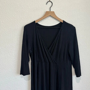Eileen Fisher Womens Large 100% Silk Dress Surplice Midi Minimalist Modest Black