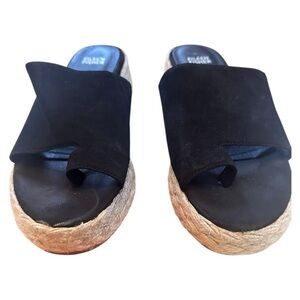 Eileen Fisher Womens Leather Toe Ring Slide On Wedge Sandals Black Size 7
