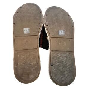 Step into comfort and style with Eileen Fisher's black slide sandals. Perfect for any casual outing, these sandals offer a sleek design and effortless elegance. Good used condition. There is some slight discoloration and color run on the interior sole of the right shoe as pictures. Priced accordingly. Size 7.