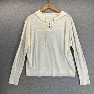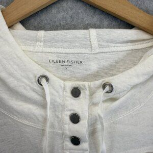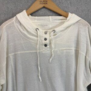 Eileen Fisher Womens Linen Snap Button Hoodie Sweatshirt Pullover Size Small