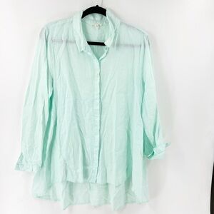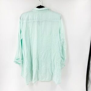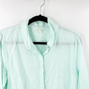 ✅ Eileen Fisher Women's Long Sleeve Linen Button Up Shirt Teal Size MEDIUM