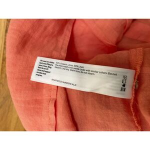 Eileen Fisher Women's M Orange Button-Up 100% Linen Tunic Shirt Mandarin Collar
