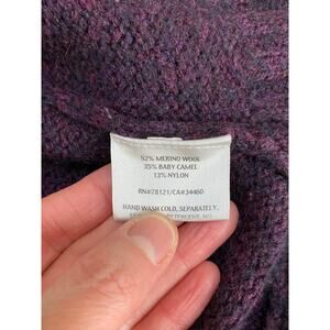 Elevate your wardrobe with this Eileen Fisher turtleneck sweater! Made from a luxurious merino wool/baby camel blend, this purple sweater offers both comfort and style. Perfect for layering or wearing on its own, it's a versatile addition to any outfit. The classic turtleneck design adds a touch of sophistication, making it ideal for both casual and more dressed-up occasions.
