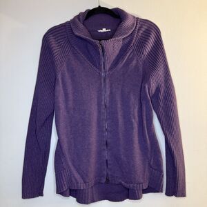 Eileen Fisher Women’s M Sweater Zip Up Purple Long Sleeve Organic Cotton Top