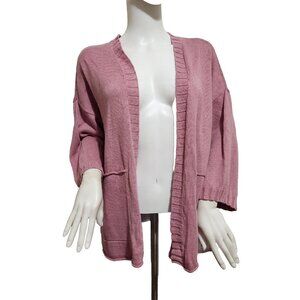 Eileen Fisher Women's Magno Mauve Cardigan Linen Cotton 3/4 Sleeve Size M (C10)