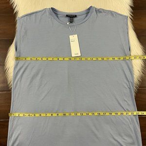 Eileen Fisher Women's Medium Petite Blue Crew Neck Boxy Shirt Dress Cap Sleeve