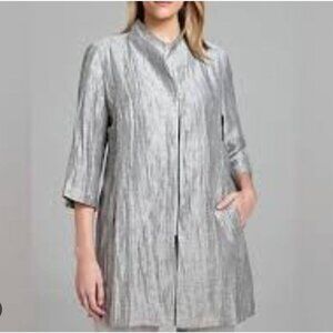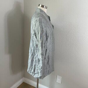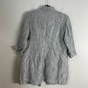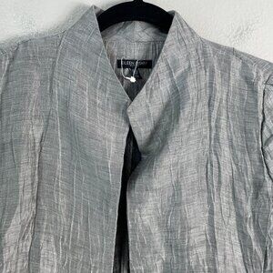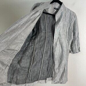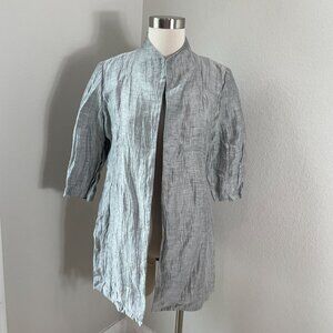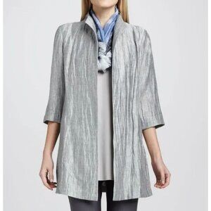 Eileen Fisher Womens Medium Petite Silver Crinkle Linen Blend Open Jacket