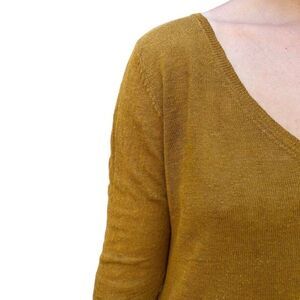 Eileen Fisher Womens Mustard Yellow Knit Linen Silk V neck Mini Dress Sz M