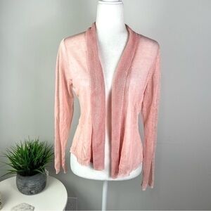 Eileen Fisher Womens Open Front Cardigan Sweater Pink Long Sleeve Petites PM