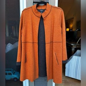 Eileen Fisher Women’s Orange Merino Wool Open Front Long Cardigan Size Medium
