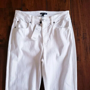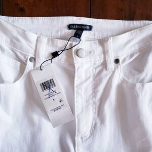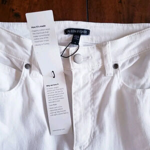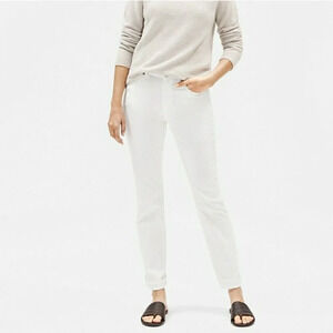 Eileen Fisher Garment Dyed Organic Cotton Stretch White Denim High Rise Straight Jeans