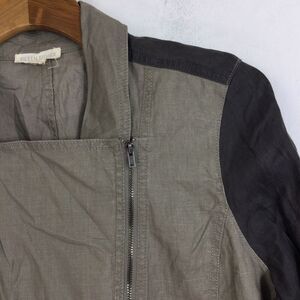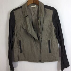 Eileen Fisher Womens Organic Linen Asymmetrical Moto Jacket Taupe Black Large