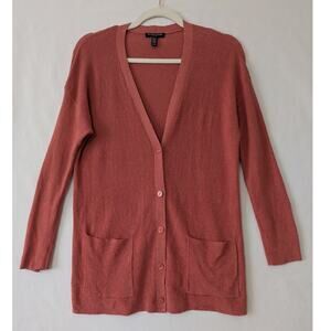 Eileen Fisher Womens Organic Linen Blend Cardigan Sweater Size MP Coral Relaxed