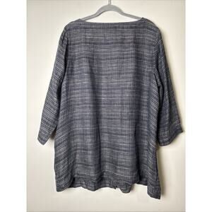 Eileen Fisher Womens Organic Linen Button Up Tunic Top 1X Lagenlook 3/4 Sleeve