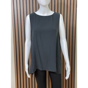 Eileen Fisher Women's PL Gray Tank Silk Tunic Georgette Casual Minimalist Work