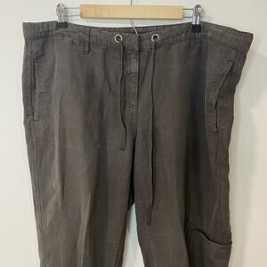 Eileen Fisher Women's Pants Cargo Baggy Linen Blend Dark Green Lagenlook Large