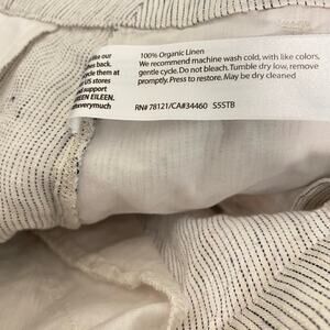 Eileen Fisher Women's Pants Organic Linen Slub Stripe Lagen Look Cream Back Med