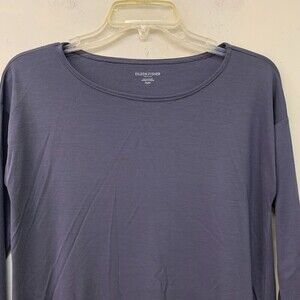 Eileen Fisher Womens Petite Size Small Purple Solid Tencel Jersey Jewel Neck Top