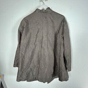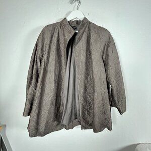 Eileen Fisher Womens Plus Size Textured Crinkle Silk Open Front Jacket Gray