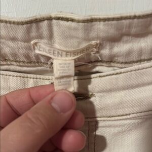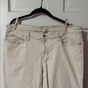 Eileen Fisher Women's Raw Hem Cream Ankle Jeans 5 Pocket Organic Size 16