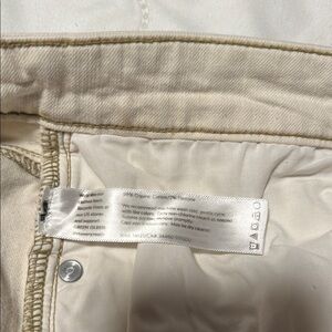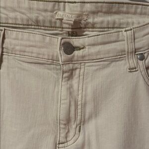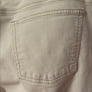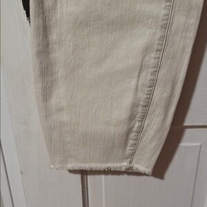 Eileen Fisher Women's Raw Hem Cream Ankle Jeans 5 Pocket Organic Size 16; Stylish and versatile cream jeans perfect for any occasion. These jeans offer comfort and a flattering fit. 98% organic cotton, 2% Elastane; previously owned, very good condition, smoke free home, fast shipping