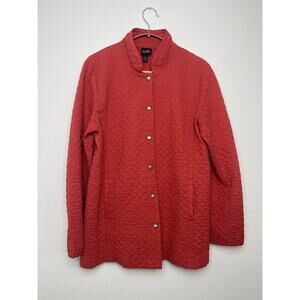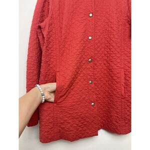 Eileen Fisher Womens Red Quilted Button Front Jacket Small 100% Organic Cotton