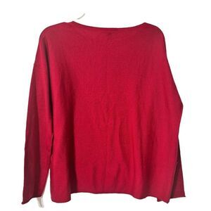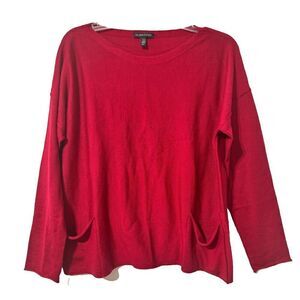 Eileen Fisher Womens Ripped Blouse Top Red Small Long Sleeve Pullover Round Neck