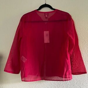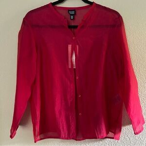 Eileen Fisher Women’s Sheer Red Button-Up Blouse Sz Small linen Lagenlook