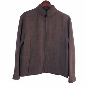 Eileen Fisher Women’s Silk Blend Textured Brown Jacket Size S Rayon Zip
